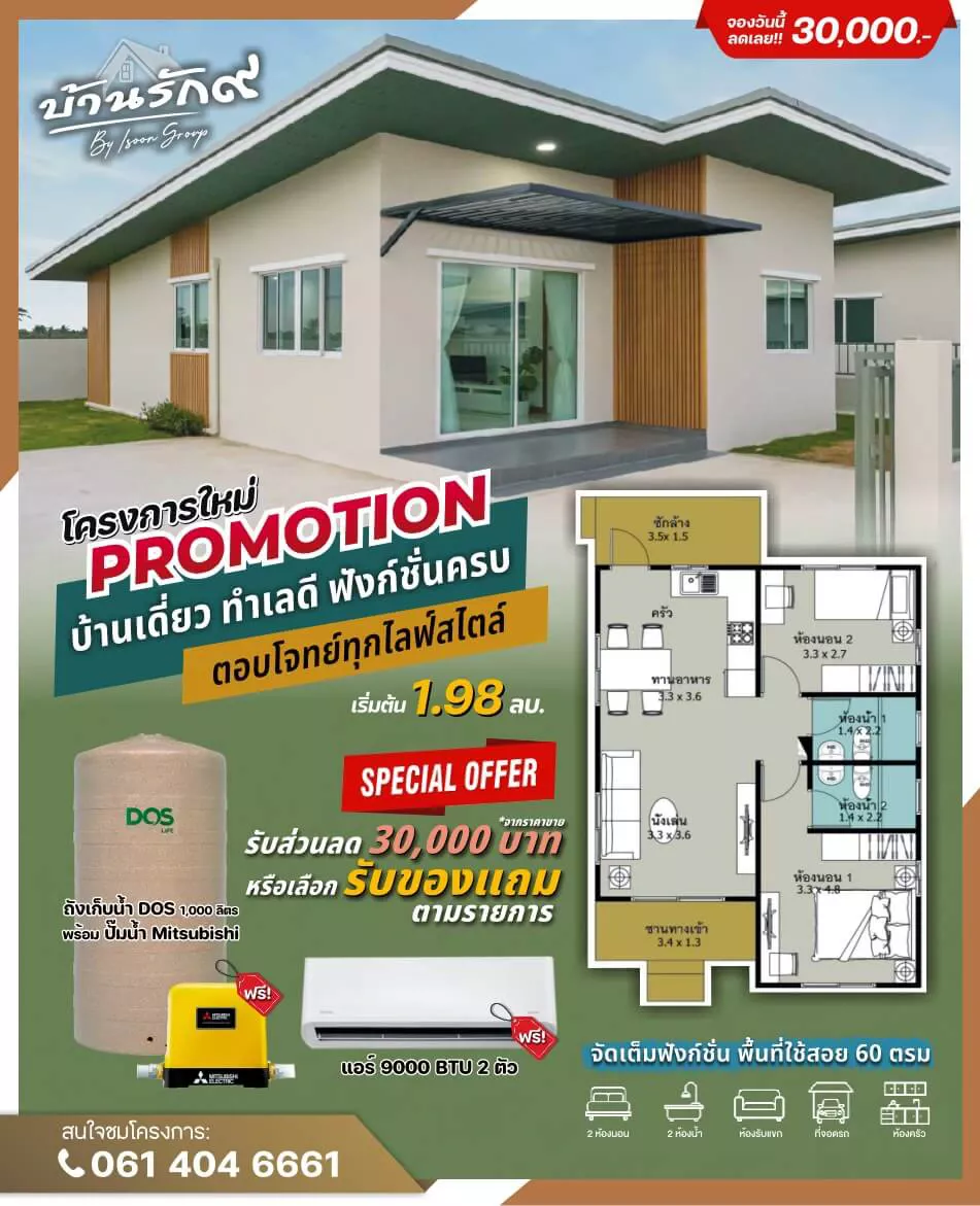 นัดหมายเข้าชมวันนี้ เพื่อสัมผัสประสบการณ์การอยู่อาศัยในบ้านคุณภาพสูงที่ บ้านรักเก้า 9 และจองบ้านในฝันของคุณได้ในราคาที่ไม่เกิน 2 ล้านบาท พร้อมสิ่งอำนวยความสะดวกครบครัน!
